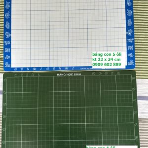 – Kích thước (700x900x0,5)mm, một mặt mầu trắng in dòng kẻ li dùng để viết bút dạ xoá được; một mặt màu xanh, dòng kẻ ô vuông trắng dùng để viết phấn. In offset UV – trên tấm nhựa PP dày 0.5mm.