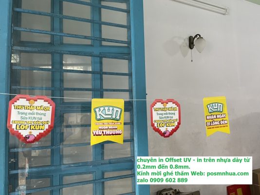 2/ Hanger nhựa, Dangler nhựa: In offset UV – in trên nhựa PP, Bế Gia nhiệt.