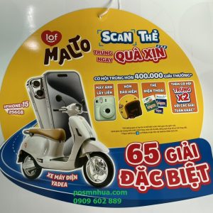 2/ Hanger nhựa, Dangler nhựa: In offset UV – in 4 màu CMYK trên nhựa PP, Bế Gia nhiệt.